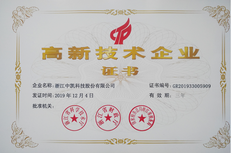 近日,從國家科技部傳來好消息,浙江中凱科技股份有限公司再次獲得“國家高新技術企業”復審通過。這是中凱科技獲得高新技術企業多次認定后的又一次實質性復審,表明了該企業科技含量高、創新能力強和持續發展的動力強勁。