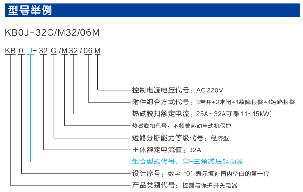 KB0作為主開關,與接觸器、時間繼電器、電氣聯鎖等附件組合,構成Y-△減壓起動器成套單元KB0J(以KB0-F消防型產品作為主開關,可構成消防型Y-△減壓起動器成套單元KB0J-F)可實現110kW及以下的電動機的Y-△減壓起動控制與保護。